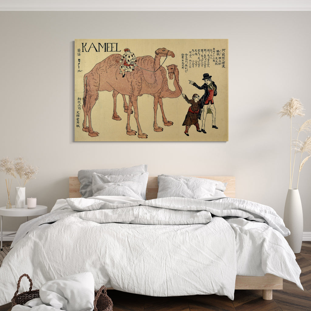Leinwandbild Nicht identifizierter Künstler Japanisch, 19. Jahrhundert - Kamele mit holländischem Führer
