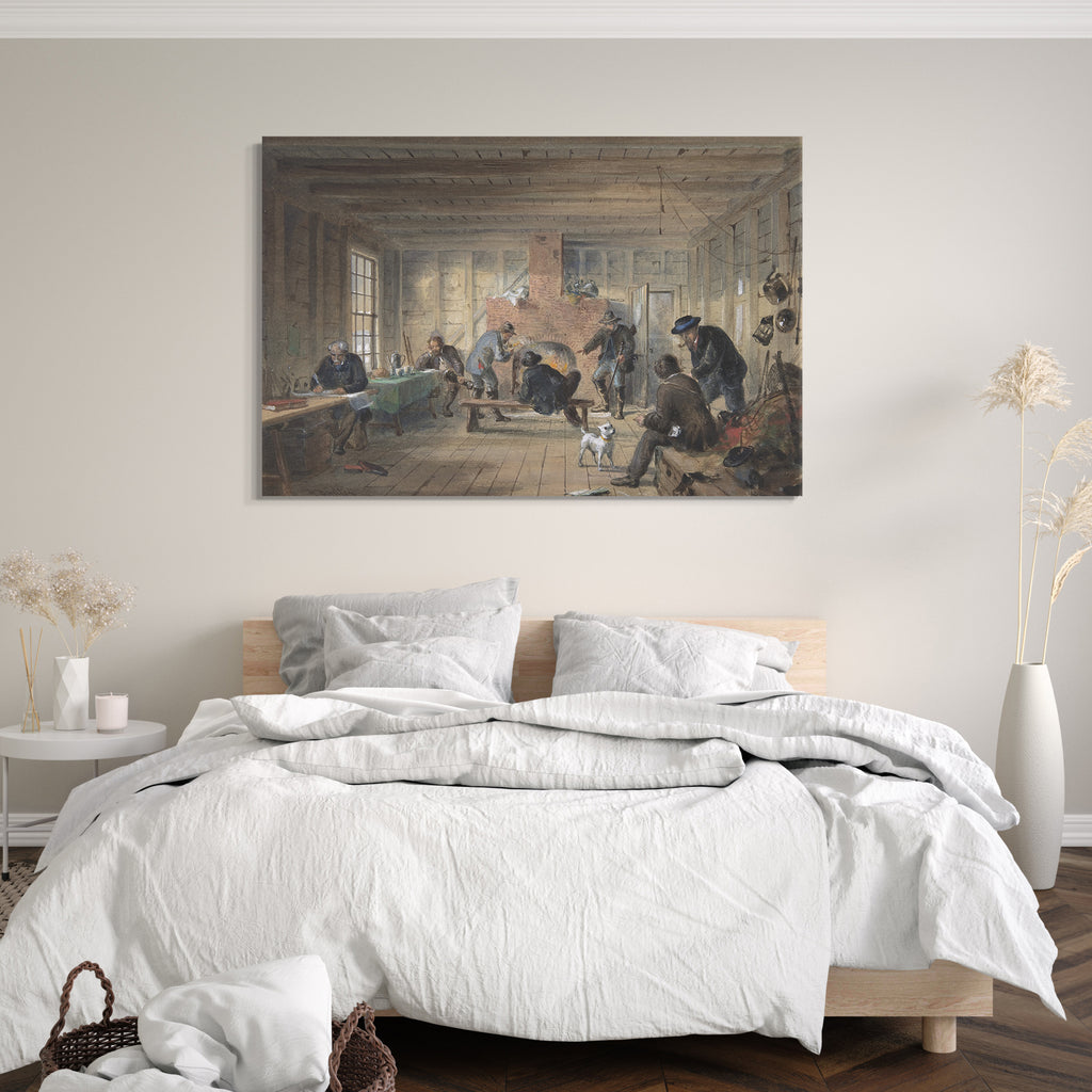 Leinwandbild Robert Charles Dudley - Telegrafenhaus, Trinity Bay, Neufundland: Innenansicht des Messesaals, 1858